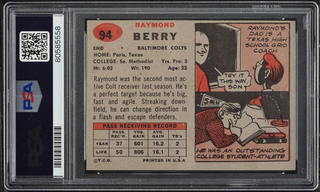 1957 Topps FB Card # 94 Raymond Berry Baltimore Colts HOF ROOKIE RC PSA 6 EXMT (MGD2)