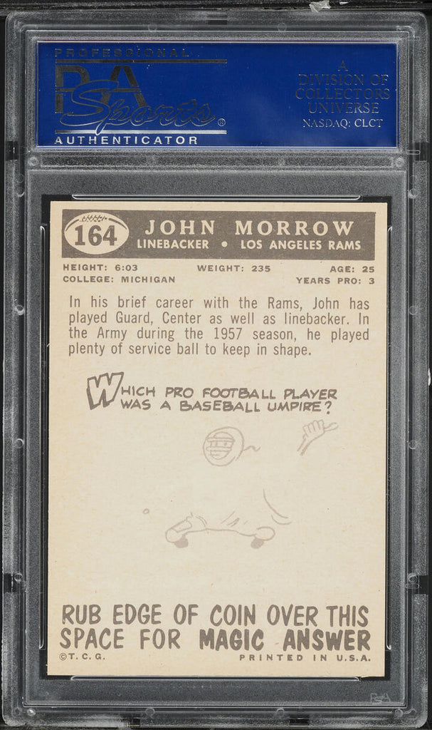 1959 Topps FB Card #164 John Morrow Los Angeles Rams ROOKIE RC PSA 8 NM-MT (MGD2)
