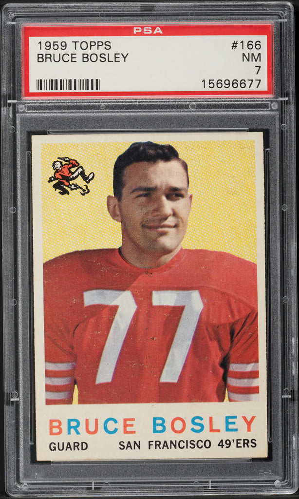 1959 Topps FB Card #166 Bruce Bosley San Francisco 49ers ROOKIE HOF PSA 7 NRMT (MGD2)