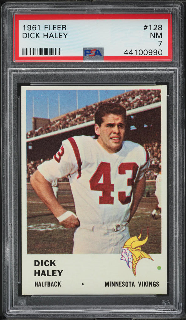 1961 Fleer FB Card #128 Dick Haley Minnesota Vikings ROOKIE RC PSA 7 NRMT (MGD2)