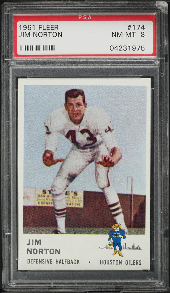1961 Fleer FB Card #174 Jim Norton Houston Oilers ROOKIE RC PSA 8 NM-MT (MGD2)