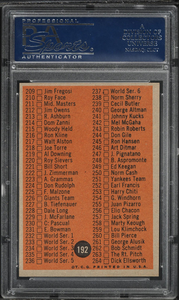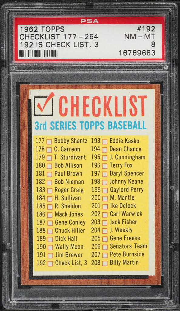1962 Topps BB Card #192 Checklist 177-264 PSA 8 NM-MT (MGD2)