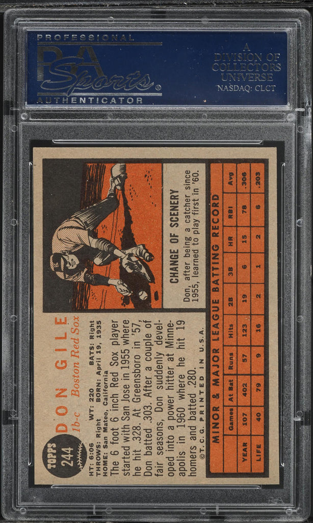 1962 Topps BB Card #244 Don Gile Boston Red Sox ROOKIE RC PSA 8 NM-MT (MGD2)