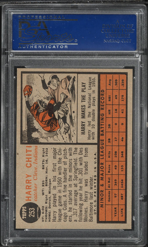 1962 Topps BB Card #253 Harry Chiti Cleveland Indians PSA 8 NM-MT (MGD2)