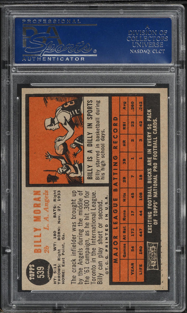 1962 Topps BB Card #539 Billy Moran Los Angeles Angels PSA 8 NM-MT (MGD2)