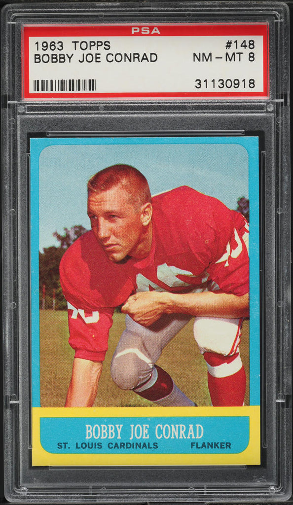 1963 Topps FB Card #148 Bobby Joe Conrad St. Louis Cardinals PSA 8 NM-MT (MGD2)