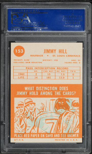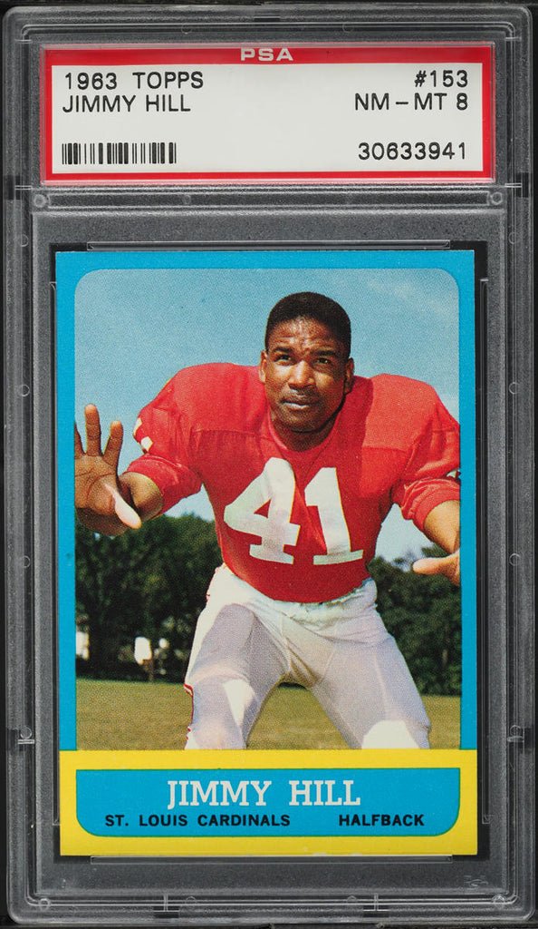 1963 Topps FB Card #153 Jimmy Hill St. Louis Cardinals PSA 8 NM-MT (MGD2)