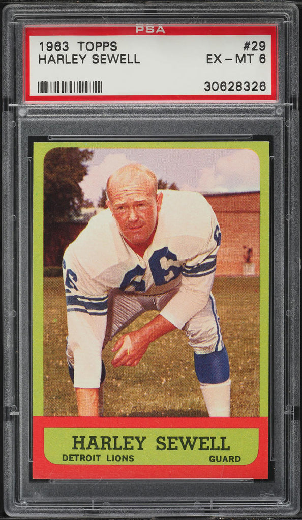 1963 Topps FB Card # 29 Harley Sewell Detroit Lions HOF PSA 6 EXMT (MGD2)
