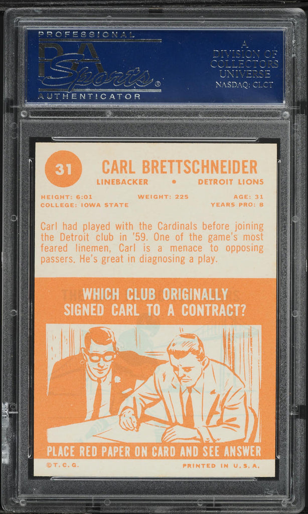 1963 Topps FB Card #154 Bill Koman St. Louis Cardinals ROOKIE RC PSA 8 NM-MT (MGD2)