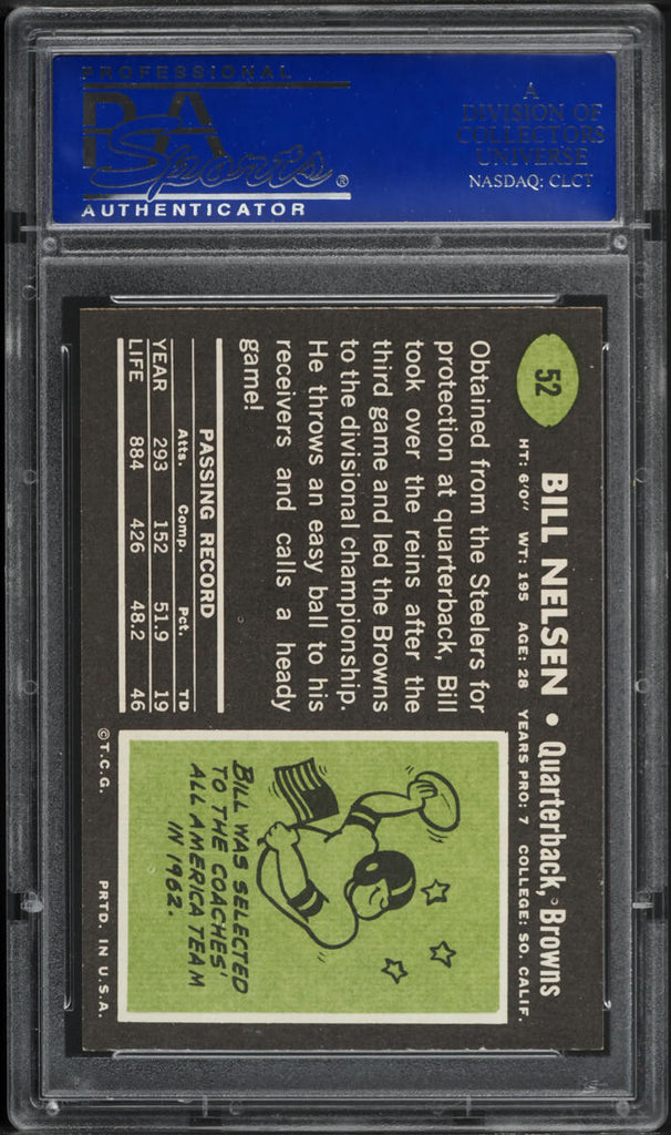1969 Topps FB Card # 52 Bill Nelsen Cleveland Browns PSA 8 NM-MT (MGD2)