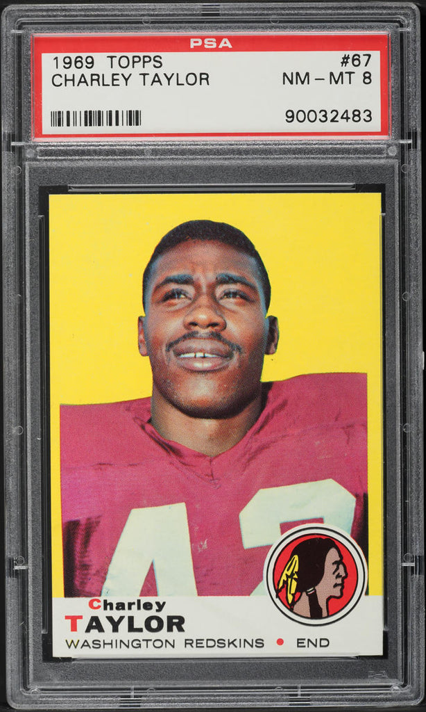 1969 Topps FB Card # 67 Charley Taylor Washington Redskins HOF PSA 8 NM-MT (MGD2)
