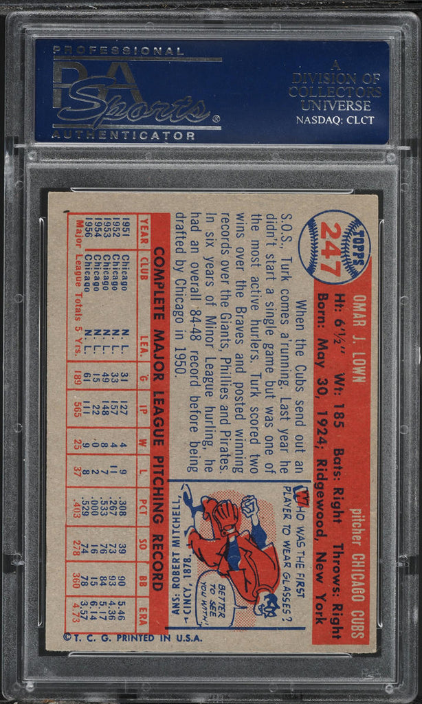1957 Topps BB Card #247 Turk Lown Chicago Cubs PSA 7.5 NRMT+ (MGD2)