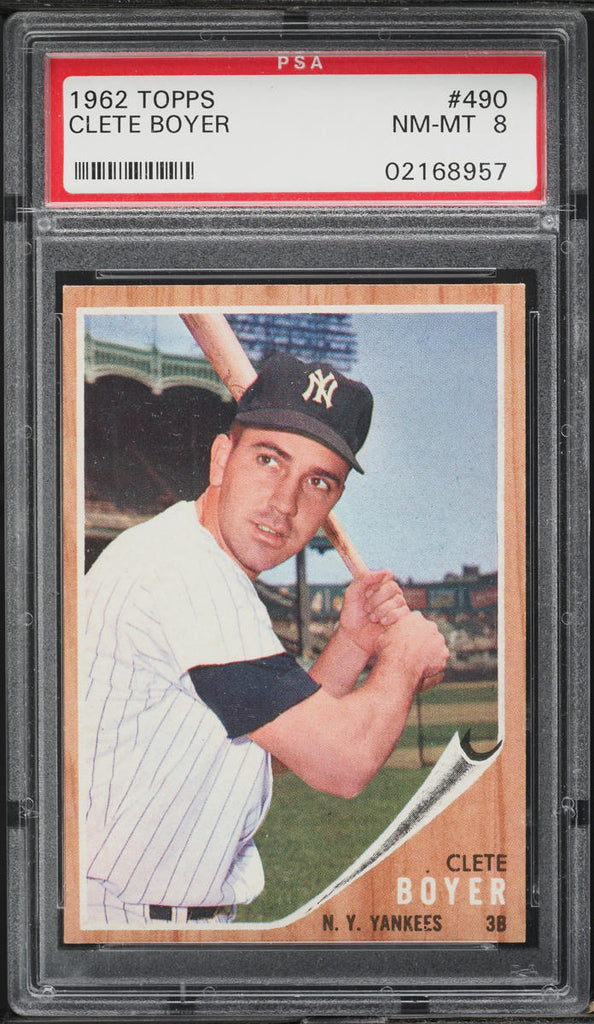 1962 Topps BB Card #490 Clete Boyer New York Yankees PSA 8 NM-MT (MGD2)