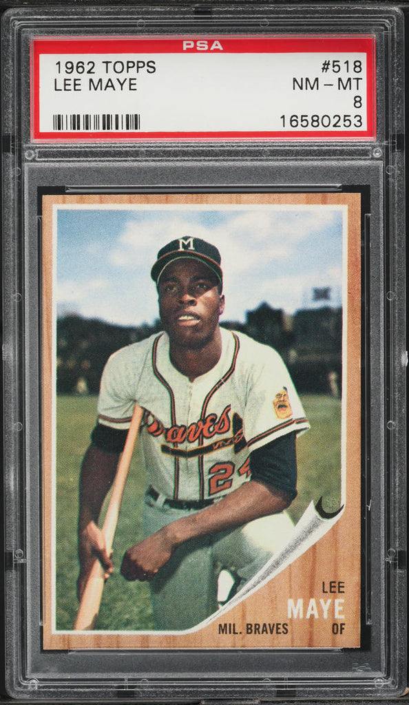 1962 Topps BB Card #518 Lee Maye Milwaukee Braves PSA 8 NM-MT (MGD2)