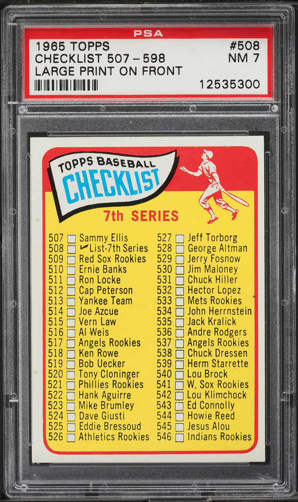 1965 Topps BB Card #508 Checklist 507-598 LARGE PRINT ON FRONT PSA 7 NRMT (MGD2)