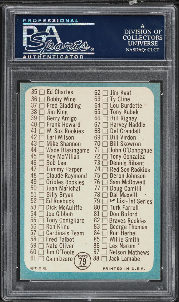 1965 Topps BB Card # 79 Checklist 1-88 61 IS CANNIZZARO PSA 7.5 NRMT+ (MGD2)