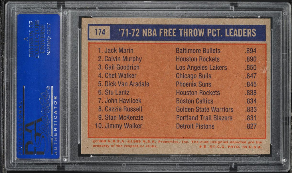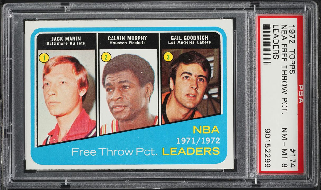 1972 Topps BkB Card #174 Calvin Murphy & Gail Goodrich LDRS PSA 8 NM-MT (MGD2)