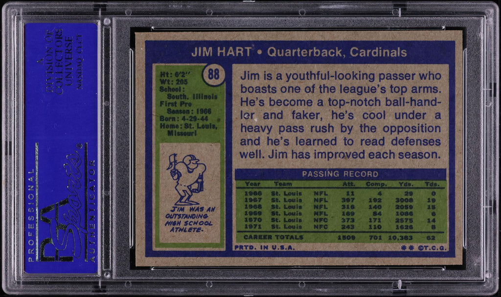1972 Topps FB Card # 88 Jim Hart St. Louis Cardinals PSA 8 NM-MT (MGD2)