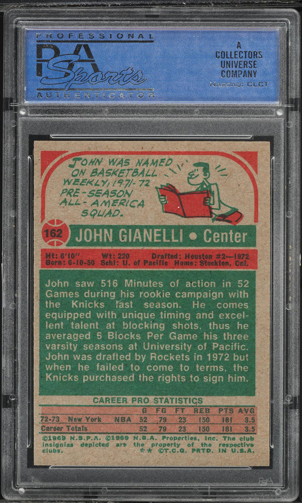 1973 Topps BkB Card #162 John Gianelli New York Knicks PSA 9 MINT (MGD2)