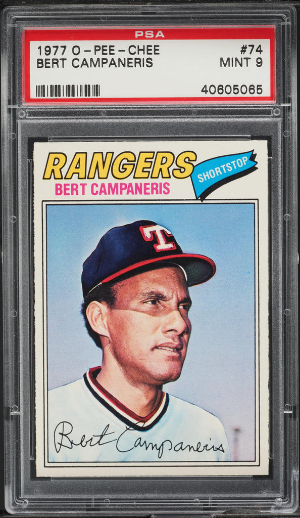 1977 O-Pee-Chee BB Card # 74 Bert Campaneris Texas Rangers PSA 9 MINT (MGD2)