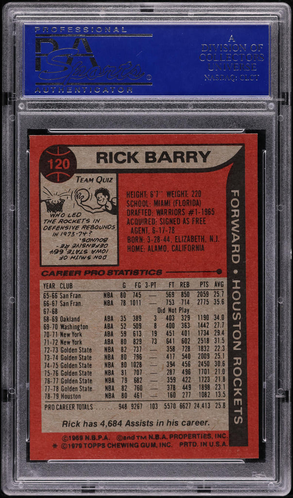 1979 Topps BkB Card #120 Rick Barry Houston Rockets HOF PSA 8 NM-MT (MGD2)