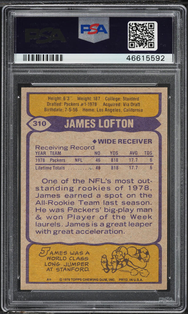 1979 Topps FB Card #310 James Lofton Green Bay Packers HOF ROOKIE RC PSA 7 NRMT (MGD2)