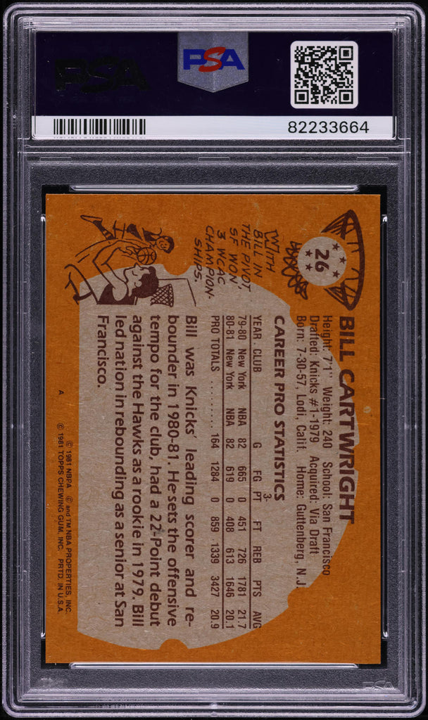 1981 Topps BkB Card # 26 Bill Cartwright New York Knicks PSA 8 NM-MT (MGD2)