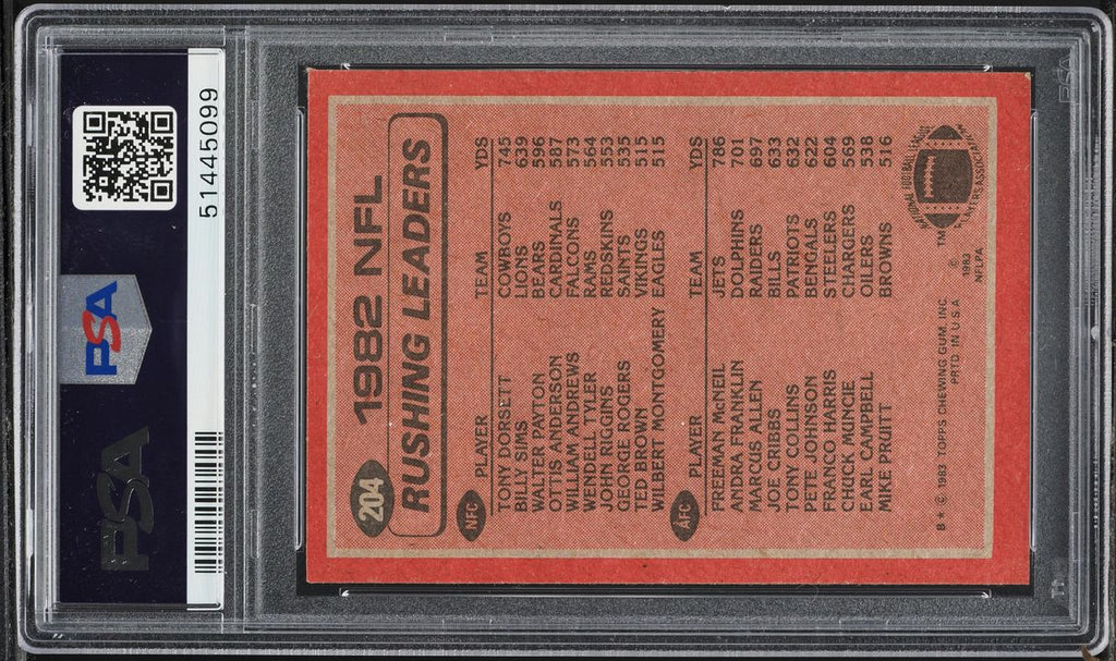 1983 Topps FB Card #204 Tony Dorsett & Freeman McNeil RUSHING LDRS PSA 9 MINT (MGD2)