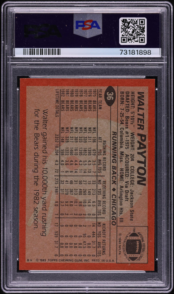 1983 Topps FB Card # 36 Walter Payton Chicago Bears HOF PSA 8 NM-MT (MGD2)